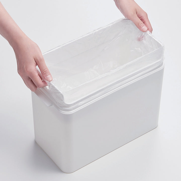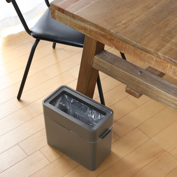 本体とフタの間にゴミ袋ホルダーが付いており、袋がはみ出さずにセットすることができます。フタをすれば外側から袋が見えないので生活感が出る心配がありません。
