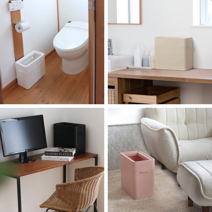 容量は9.5Lとシンク上やサニタリーボックスとしてはもちろん、リビングや洗面所など様々な場所で活躍するサイズです。シンプルでスタイリッシュなデザインとスマートなフォルムは、幅広いテイストのインテリアに馴染みます。