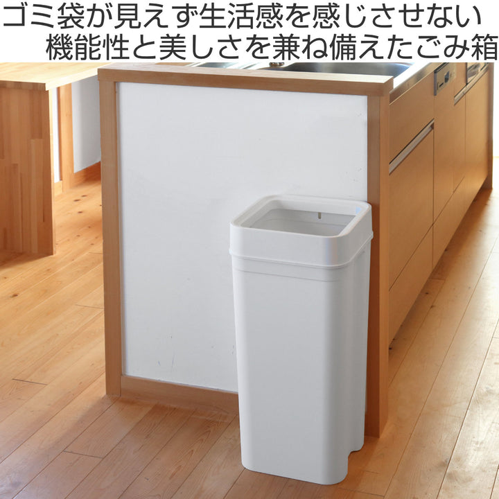 本体とフタの間にゴミ袋ホルダーが付いており、袋がはみ出さずにセットすることができます。フタをすれば外側から袋が見えないので生活感が出る心配がありません。
