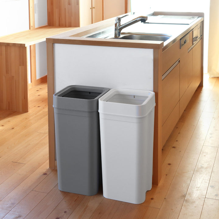 対に入った縦のスリットを使い、2種類までのゴミを分別可能です。複数のゴミ箱を並べる必要がなく、限られた狭いスペースでも置き場所に困りません。
