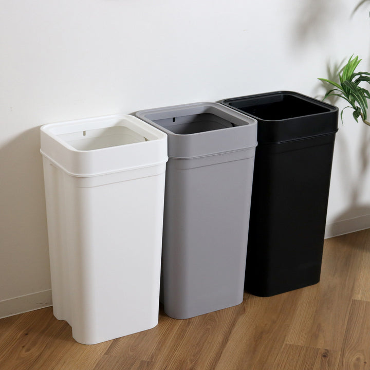 分別用に並べて置いても場所をとらず、すっきり設置できます。色違いを複数個並べて、ペットボトル、ビン、缶など、種類ごとに捨てる色を決めておけば、一目で分かりやすい分別ゴミ箱として使用できます。
