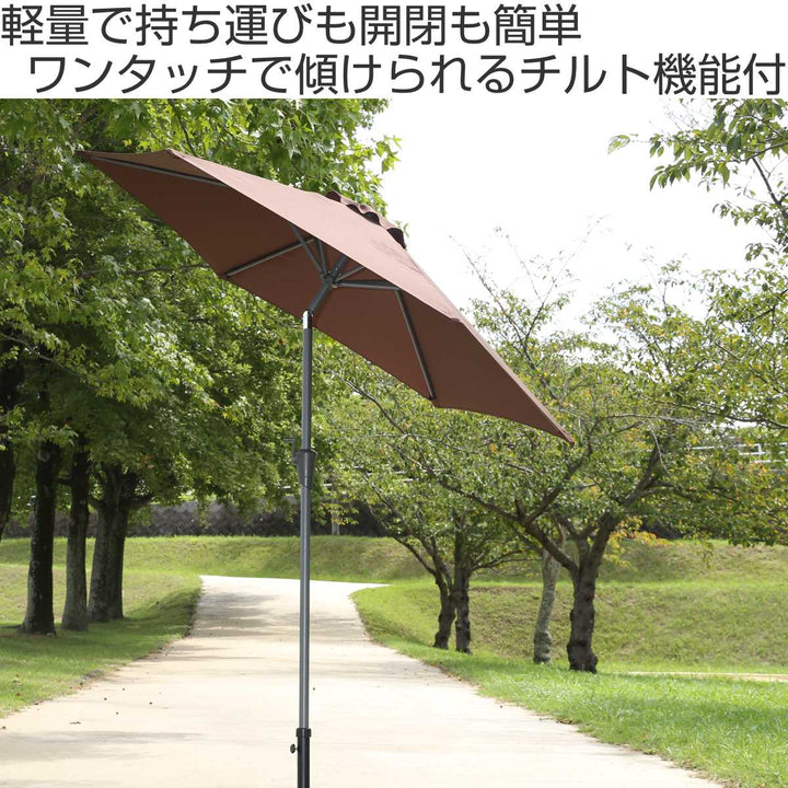 ワンタッチで傘を傾けられるチルト機能付きです。太陽の向きに合わせて調節することができます。