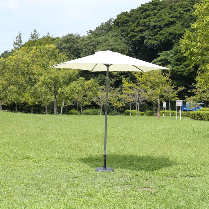 | 材質 | 構造部材:アルミニウム(支柱グレー) 傘生地:ポリエステル200g/m2 耐水性、UVカット加工なし |