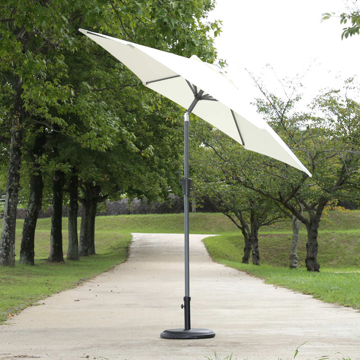 テーブルやベンチと合わせてお使いいただるアルミ製のガーデンパラソル 240cmです。お庭で緑や花を見ながら一息つきたい時や、家族や友人たちとのバーベキューをする時などにも便利です。