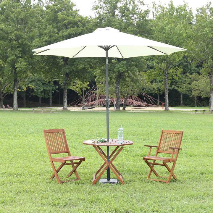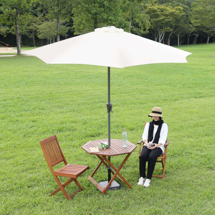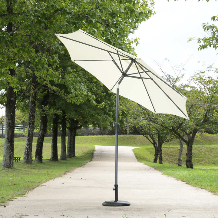 テーブルやベンチと合わせてお使いいただるアルミ製のガーデンパラソル 270cmです。お庭で緑や花を見ながら一息つきたい時や、家族や友人たちとのバーベキューをする時などにも便利です。