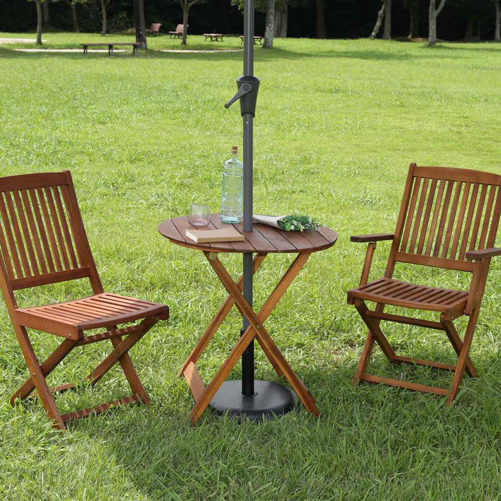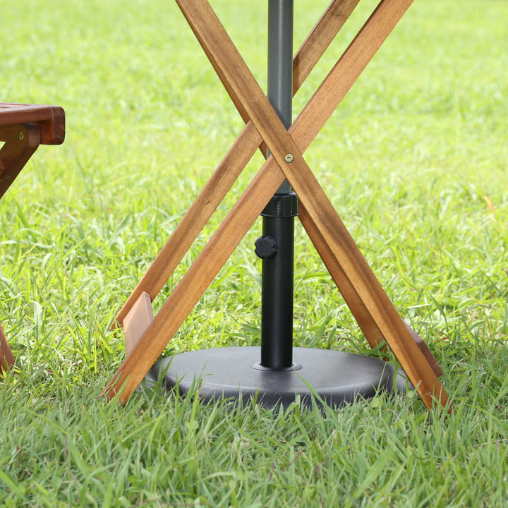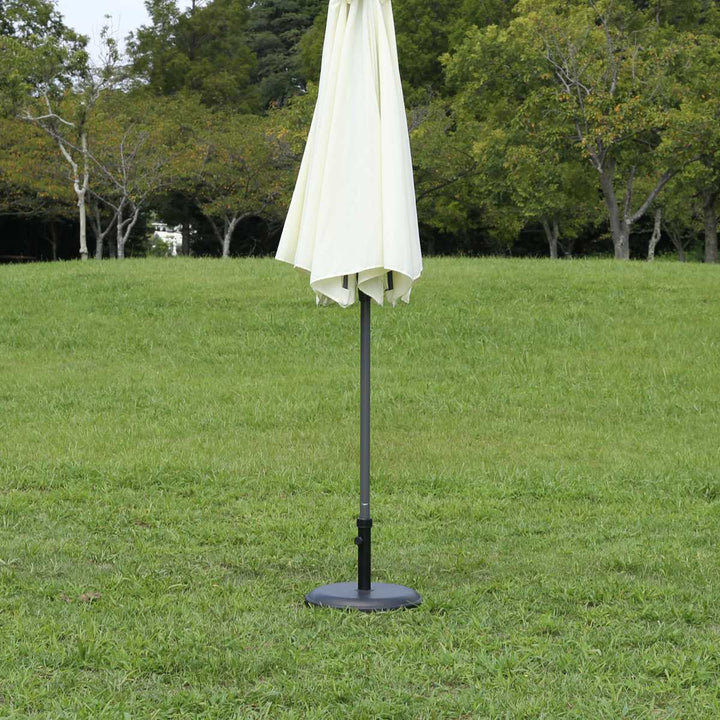 パラソルと合わせてお使いいただけるパラソルベース 15kgです。お庭で緑や花を見ながら一息つきたい時や、家族や友人たちとのバーベキューをする時などにも便利です。