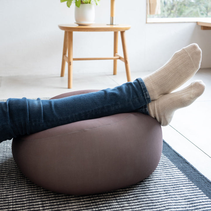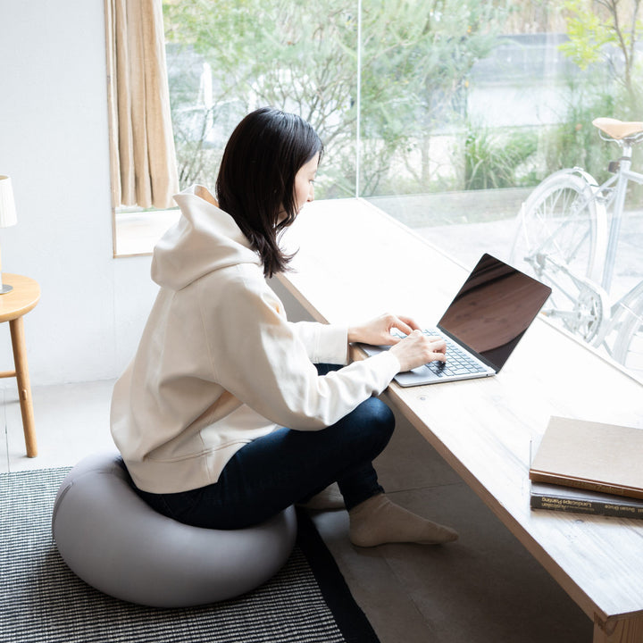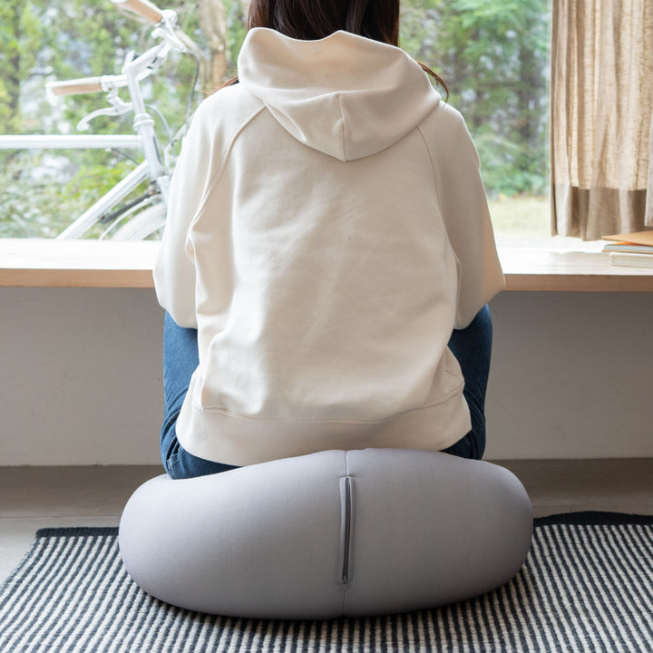 座り心地を追求した結果、お尻の方が少し高くなっています。また、極小ビーズと相性がいいジャージ生地を使用することで過度な沈み込みを防ぎ、ビーズの気持ちいい感触はそのままに体を支えてくれます。やさしく包まれるような感覚をぜひ体験してください。