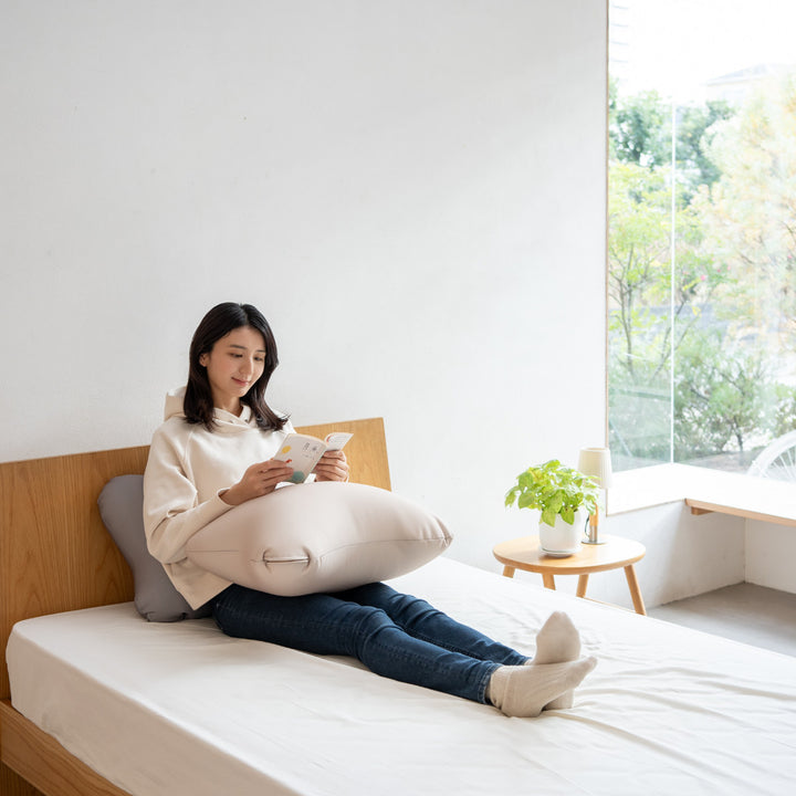 極小ビーズと相性がいいジャージ生地を使用することで過度な沈み込みを防ぎ、ビーズの気持ちいい感触はそのままに体を支えてくれます。やさしく包まれるような感覚をぜひ体験してください。