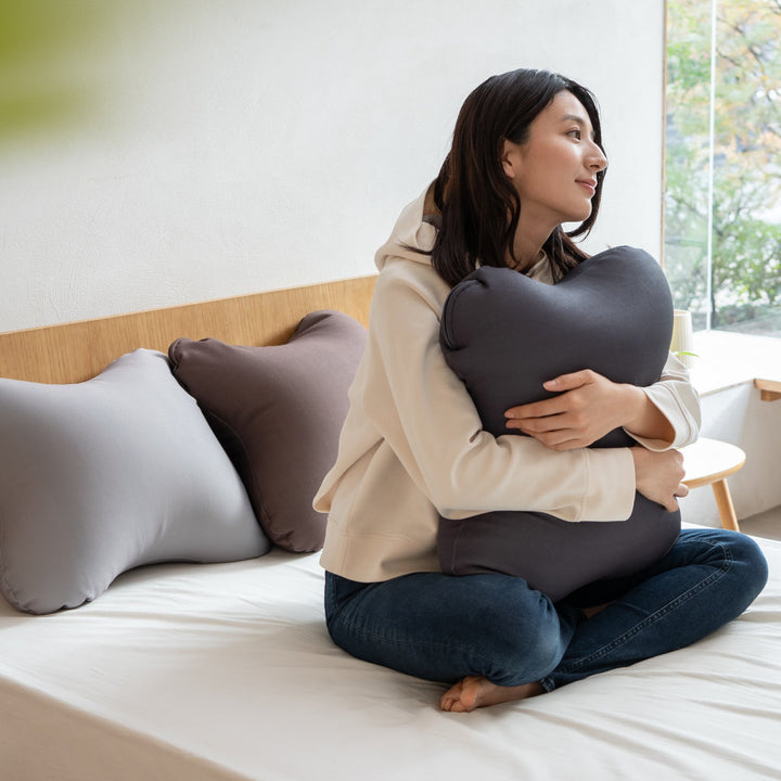 大の字にも見える特殊な形をしているので、背当てクッションはもちろん、足枕などにも活躍します。もちろん、前に抱きかかえても気持ちがいいです。抱きしめた時のフィット感をぜひ堪能してください。