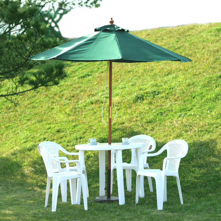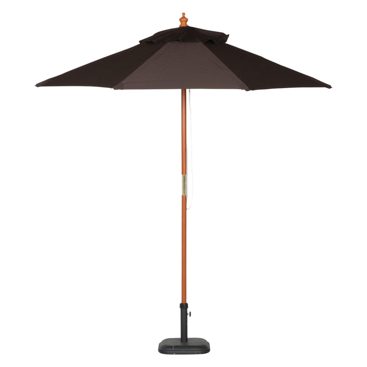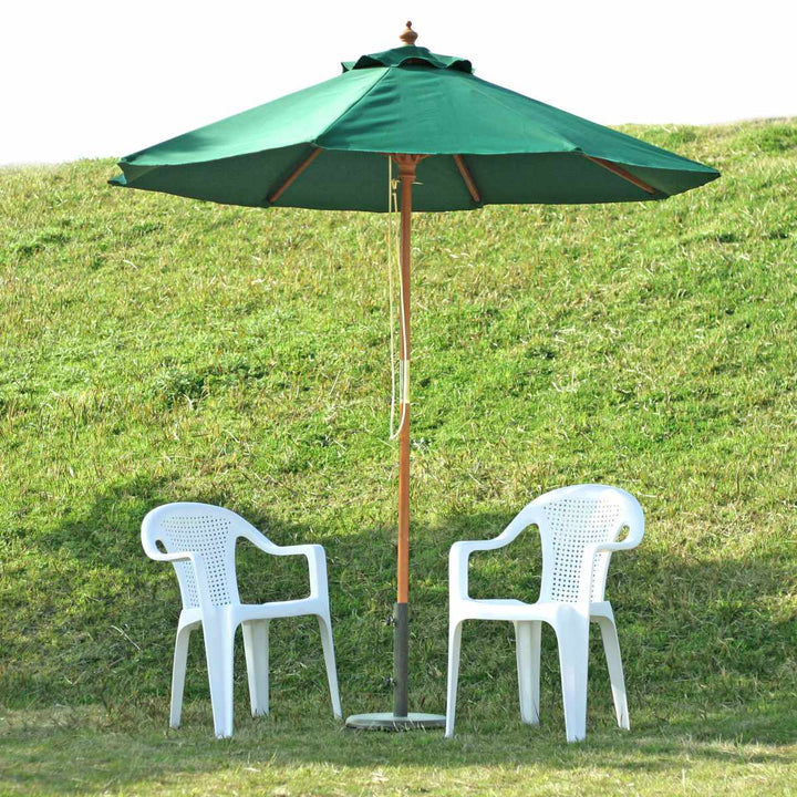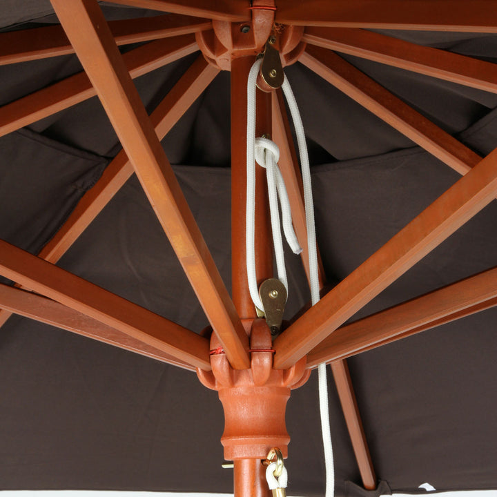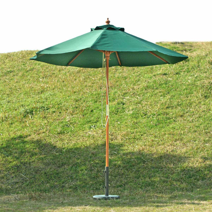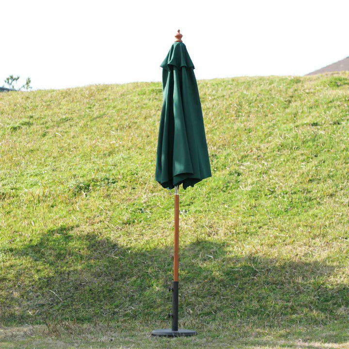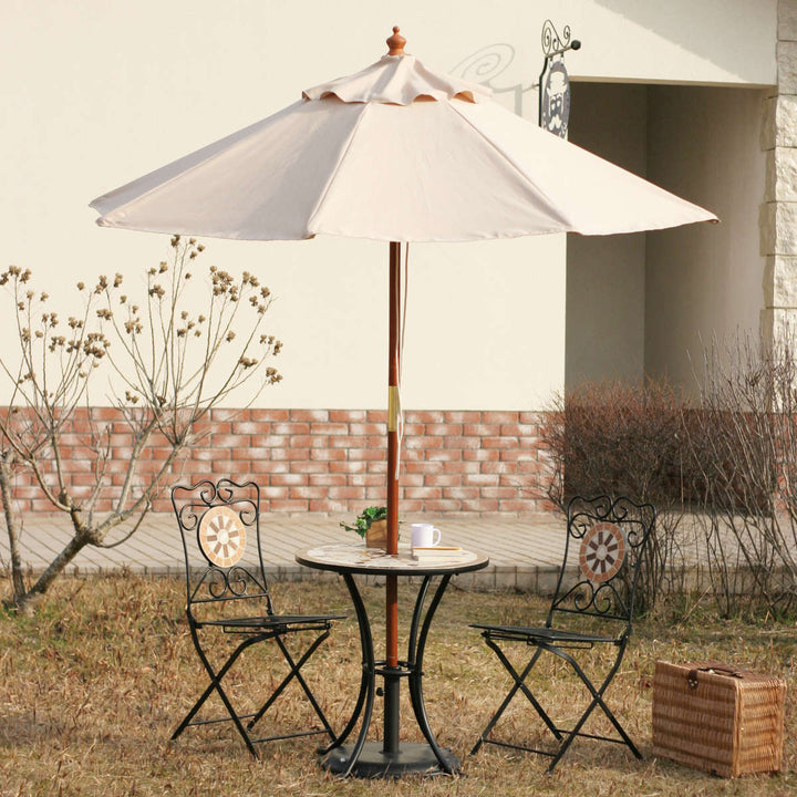 テーブルやベンチと合わせてお使いいただる木製のガーデンパラソル 210cmです。お庭で緑や花を見ながら一息つきたい時や、家族や友人たちとのバーベキューをする時などにも便利です。