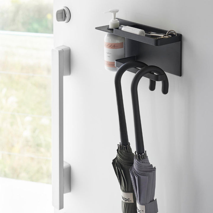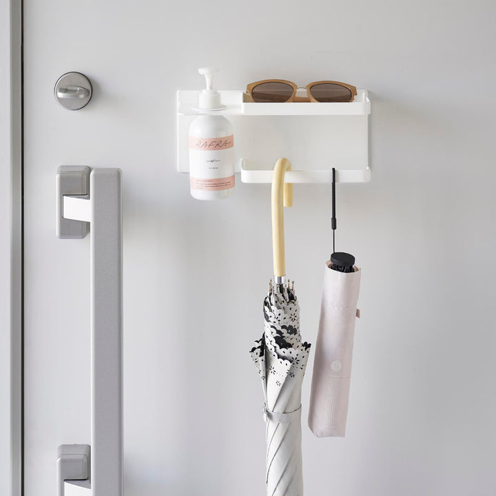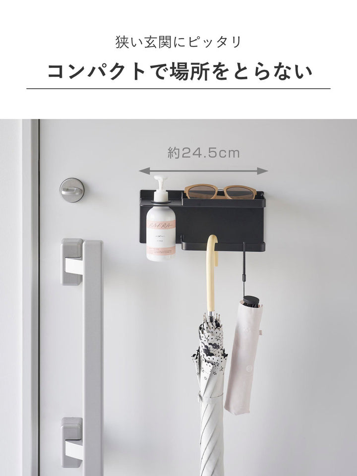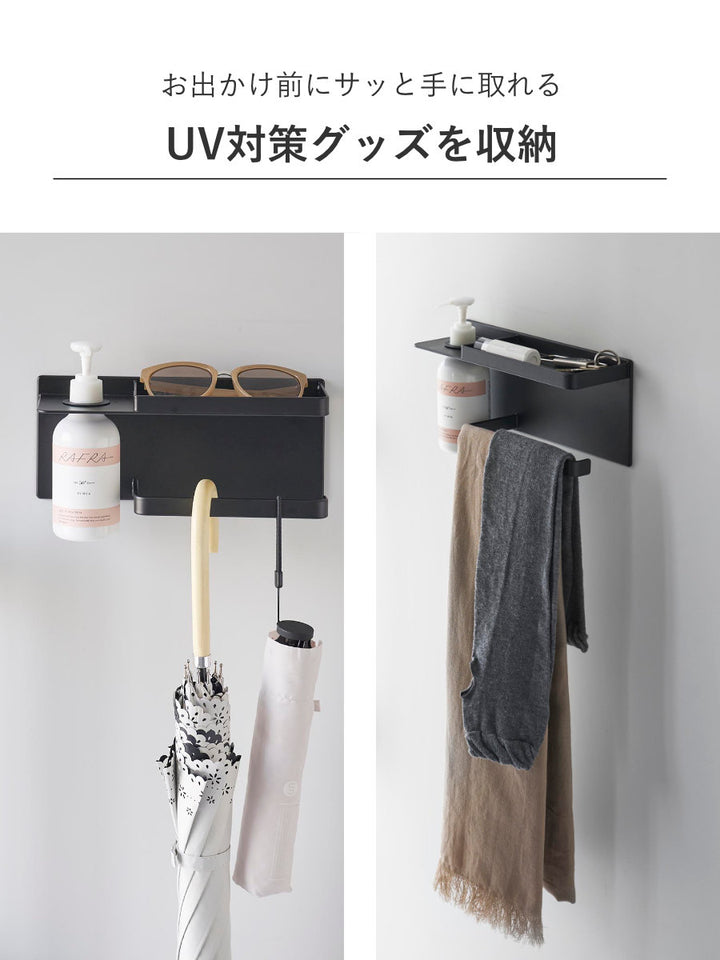 サングラスや日傘・折り畳み傘、ストールやアームカバーなどのUV対策グッズを玄関扉に浮かせて収納できます。玄関周りに置くと、お出かけの準備や帰宅後の片付けがスムーズになります。