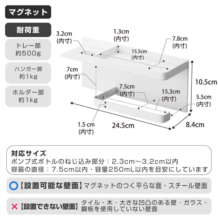 | 耐荷重 | トレー部:約500g ハンガー部:約1kg ホルダー部:約1kg |
