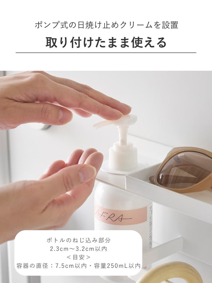 手軽に使えるポンプ式のUVクリームを取付できるので、庭仕事や短時間のお出掛け、お子様のUV対策が欠かさずにできます。