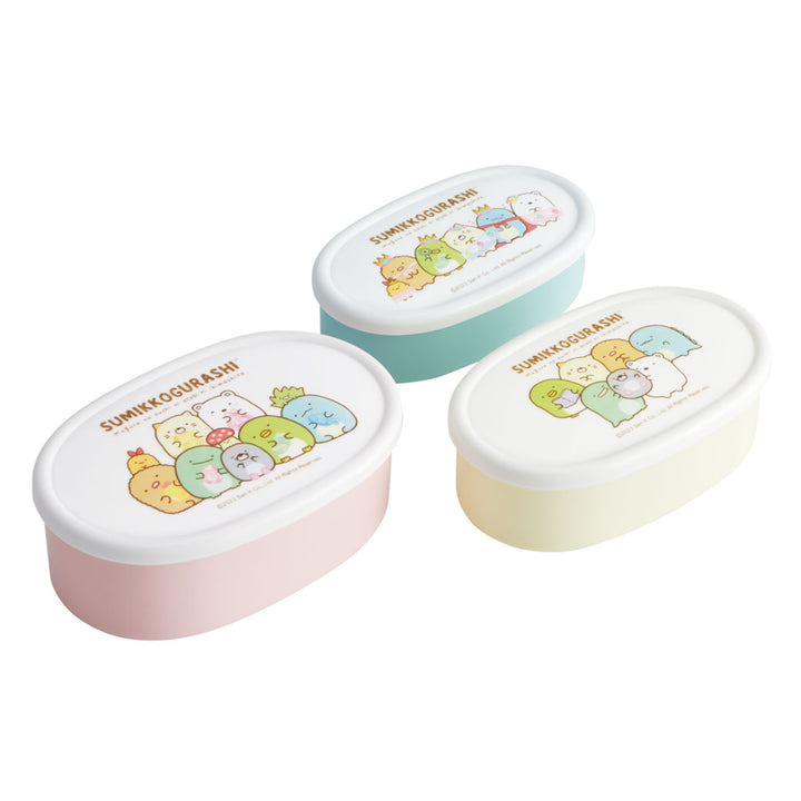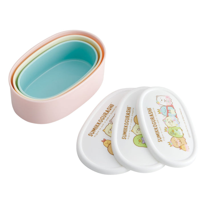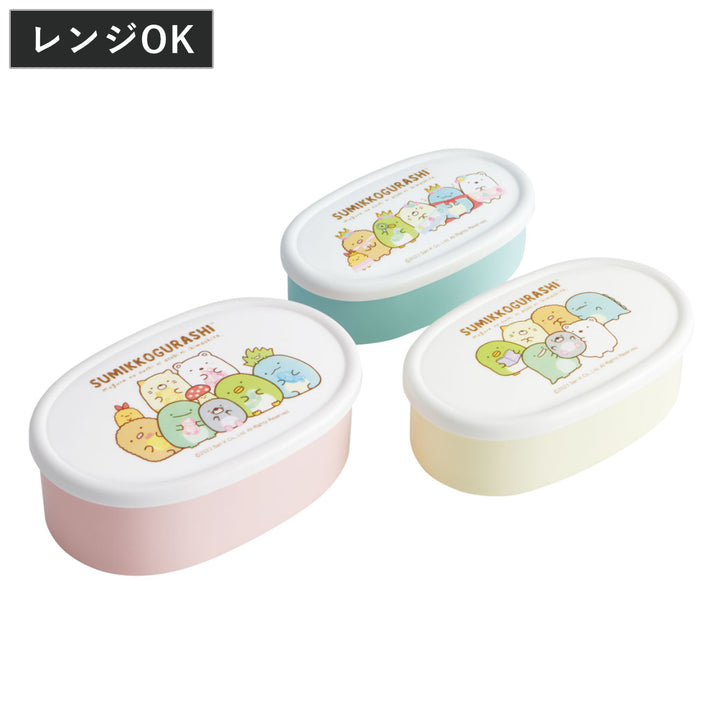 3サイズが1セットになったランチボックスです。抗菌加工が施されているのでお子様も安心です。大サイズが約400ml、中サイズが約280ml、小サイズが約180mlです。ご飯、おかず、デザートなどメニューによって容器を使い分けることができます。お弁当箱としてだけではなく、保存容器としてもお使いいただけます。