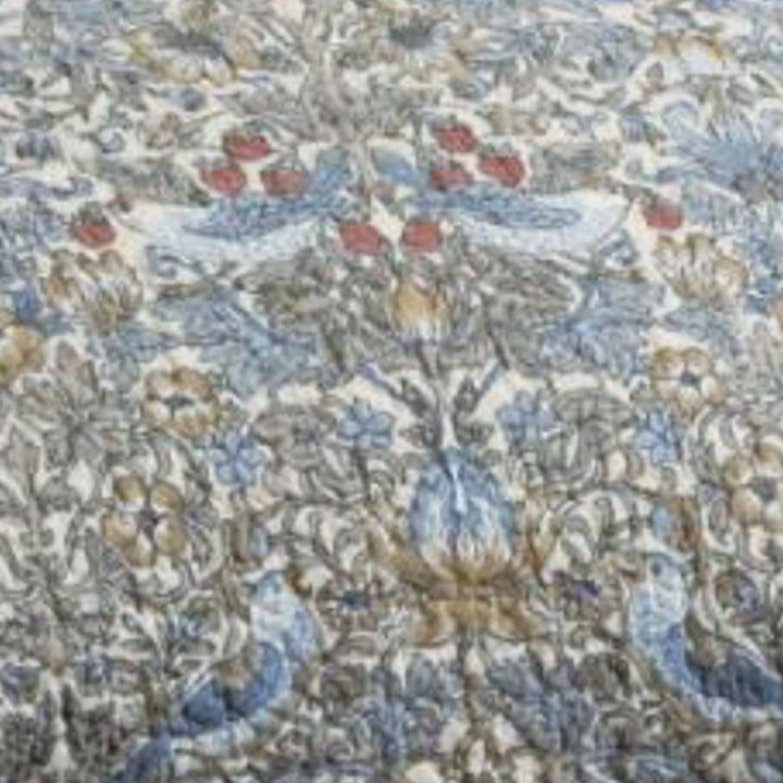 生地から中綿まで全てに綿を使用した敷きパッドです。天然の綿100%なので低刺激でお肌に優しい使い心地です。柄はウィリアム・モリスの代表作の一つである「いちご泥棒」です。繊細に描かれた草花や動物などの自然のモチーフはお部屋に彩りを与えてくれます。