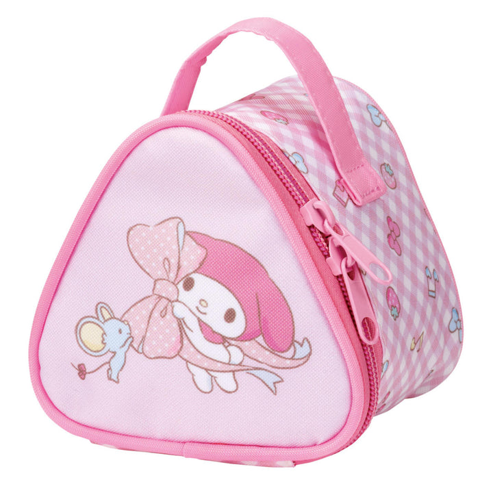 コンビニの三角おにぎり2個がそのまま入るおにぎり型のランチバッグです。断熱材と内側のアルミ蒸着で保冷保温効果があります。しっかりした芯材が入っているのでおにぎりを潰さず持ち歩けます。