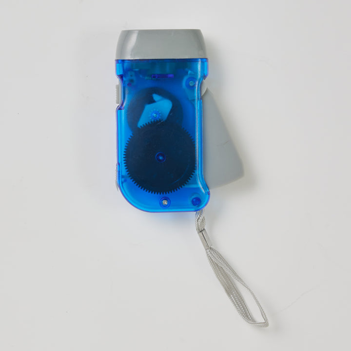 ハンドルを繰り返しにぎるだけで発電する懐中電灯です。電池不要なので、いつでもどこでも使用できて、緊急時・災害時にあると安心です。