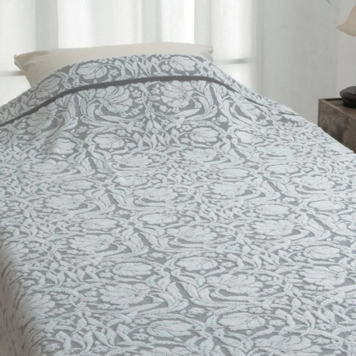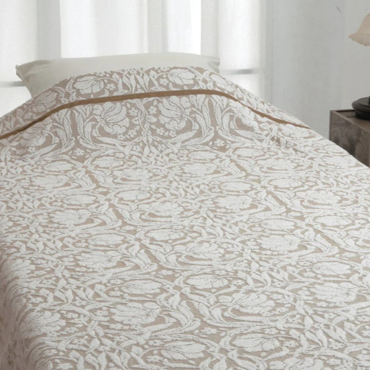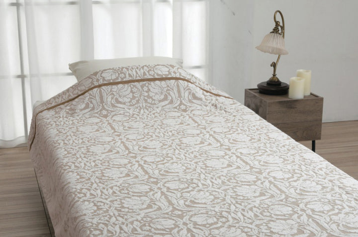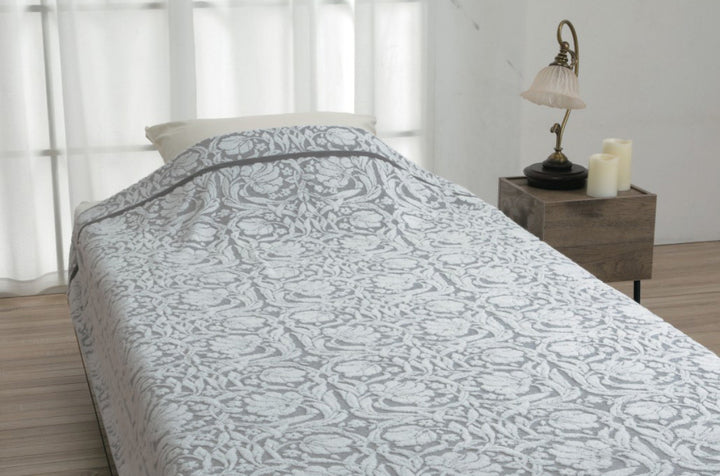 吸水性に優れたスーパーゼロという糸を使用したタオルケットです。やわらかく、ふっくらとしたボリューム感が特徴です。優しく流れるような草花のモチーフや植物のデザインがお部屋を豊かに彩ります。