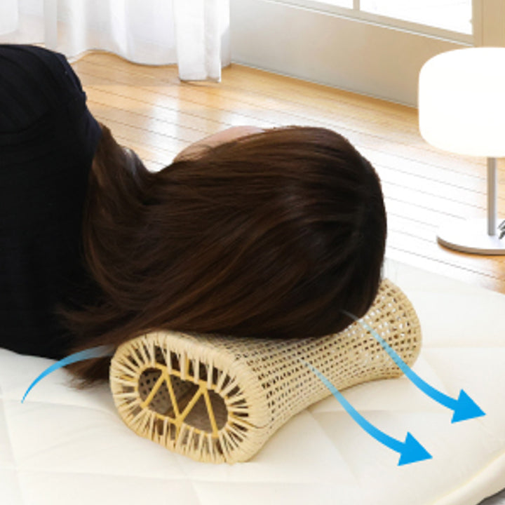 日本でなじみのある籐で編みあげた籐枕です。通気性があり適度な弾力が首を支えてくれます。ひんやりと爽やかな肌ざわりなので寝苦しい夏も蒸れなく、目覚めもスッキリと快適にお過ごしいただけます。