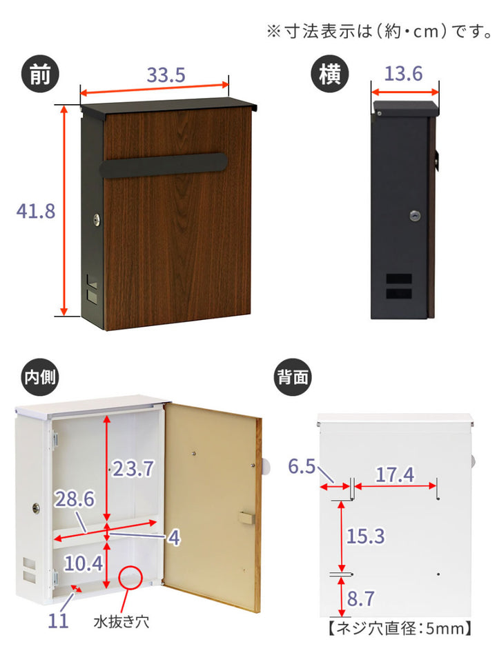 | サイズ | 約 幅33.5×奥行13.6×高さ41.8(cm) 投函口:約 幅28.4×奥行2.9(cm) |