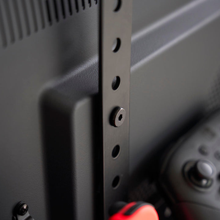 テレビ裏のネジ穴に付属のネジを使用して固定するだけなので、簡単に設置ができます。支柱は2.5cm間隔で高さ調節が可能です。