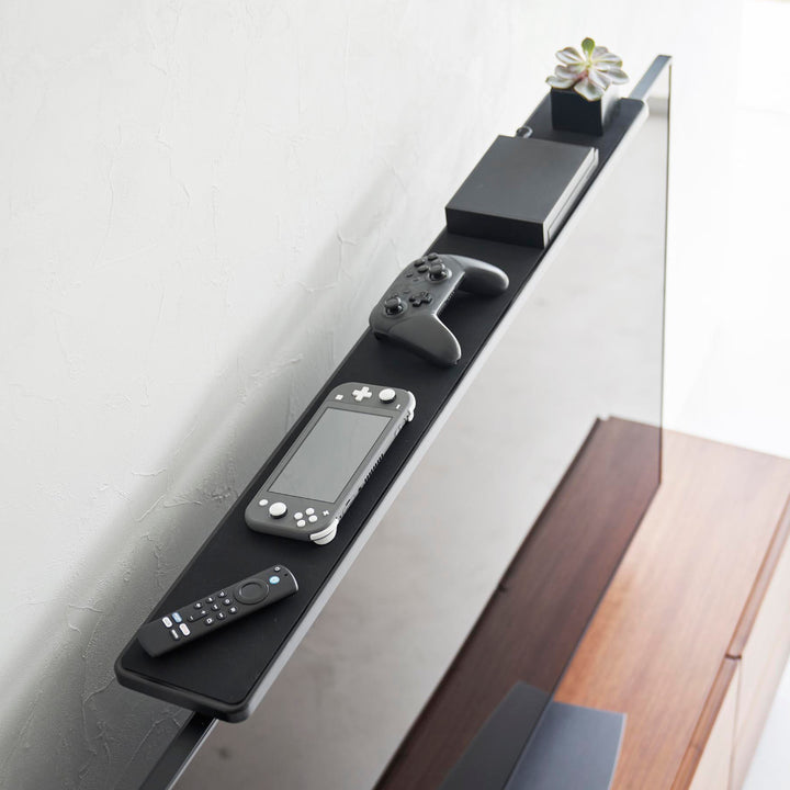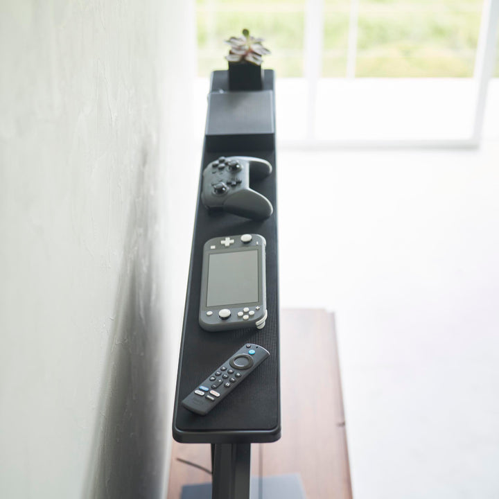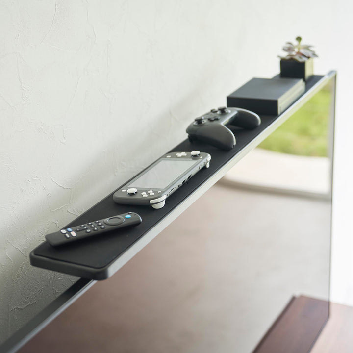 置き場所が定まらないリモコンやテレビ周りの小物類、ゲーム周辺機やスマートスピーカーなどの置き場所に便利です。ごちゃごちゃしがちなテレビ周りの物をスッキリと整理整頓できます。