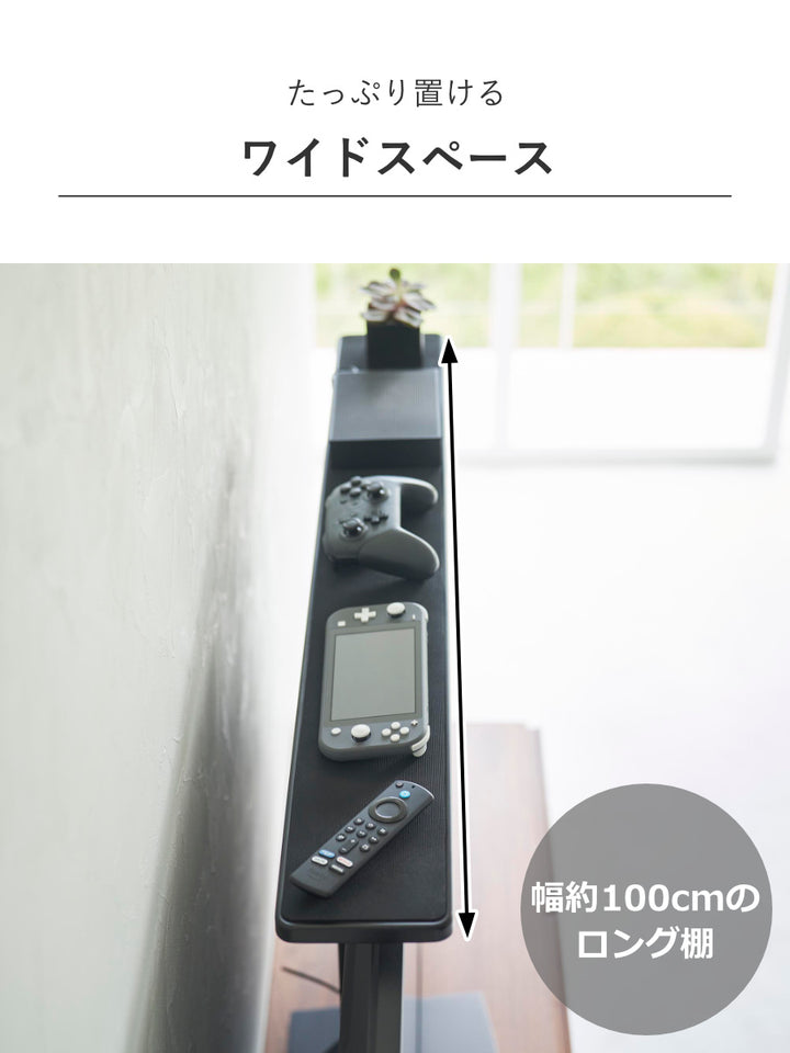 幅100cmのロング棚なので、小物類から録画用HDDやゲーム機までたっぷり置けます。また、ディフューザーやインテリア小物を置いて飾り棚としてもお使いいただけます。
