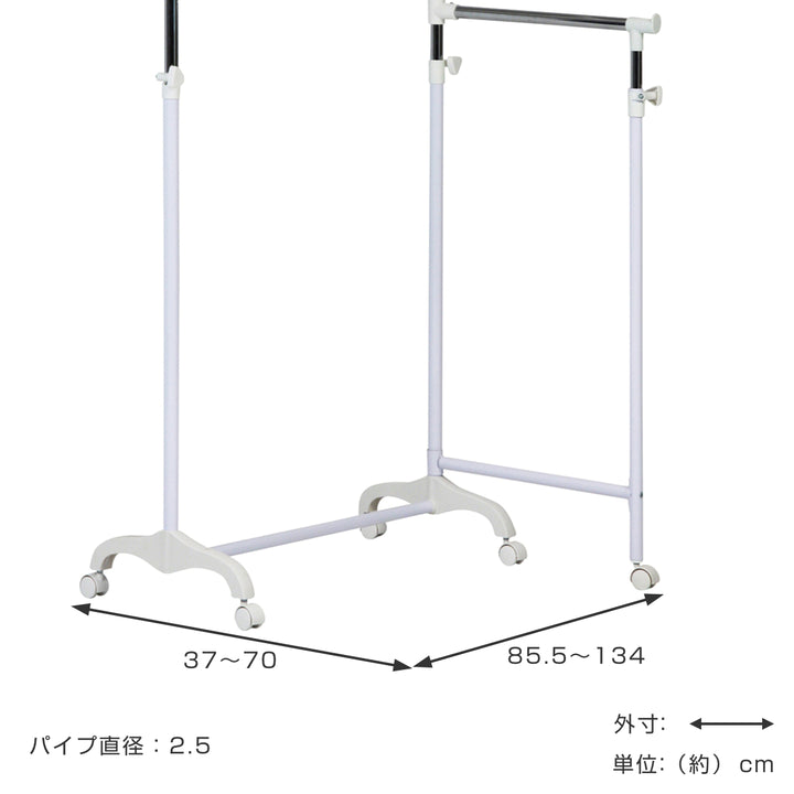 | サイズ | 約 横85.5×縦37(cm) 約 幅85.5~134×奥行37~70×高さ111.5~187(cm) パイプ直径:25mm |