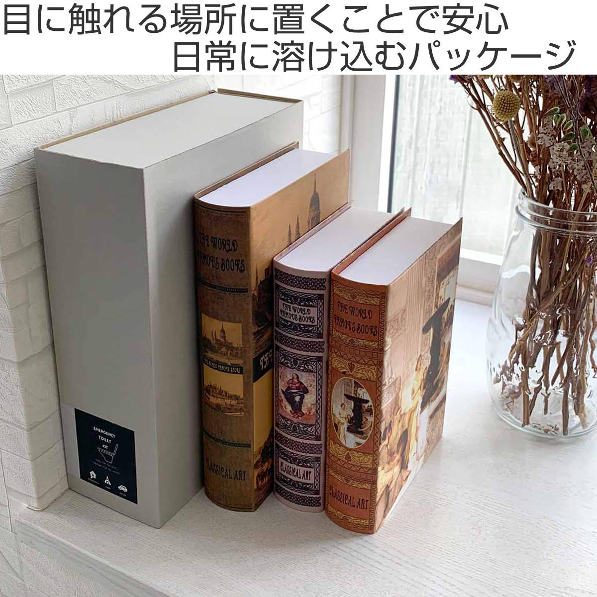インテリアのように、日常に溶け込むデザインの、緊急用トイレキットです。A4サイズのコンパクトな大きさなので、トイレや本棚などにストックしておくことができます。
