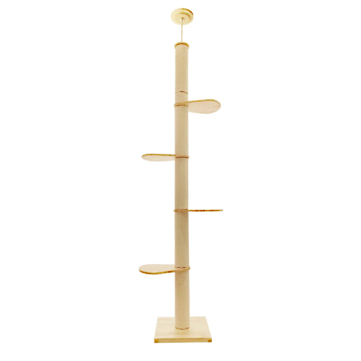 天井にまっすぐ突っ張って固定するので倒れる心配がなく ネコちゃんも飼い主さんも安心してお使いいただけます。突っ張り式は、据え置き型に比べて場所を取らず省スペースです。高いところが大好きなネコちゃんや多頭飼いにおすすめです。