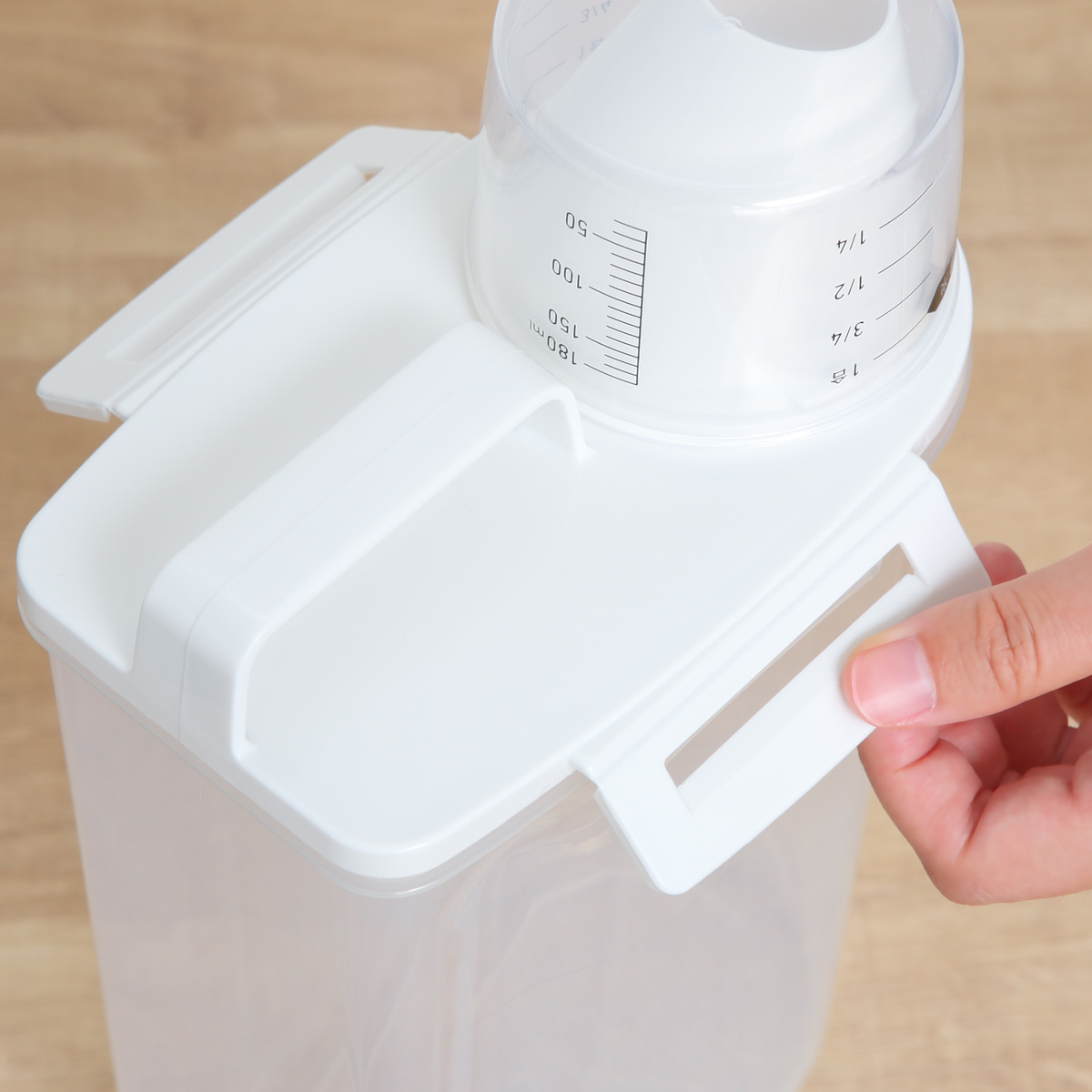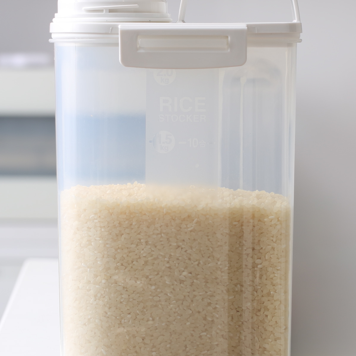 ケースは透明なのでお米の残量が一目で分かります。中の状態が見えることで、買い足しのタイミングがわかりやすく、買い忘れ防止にも繋がります。