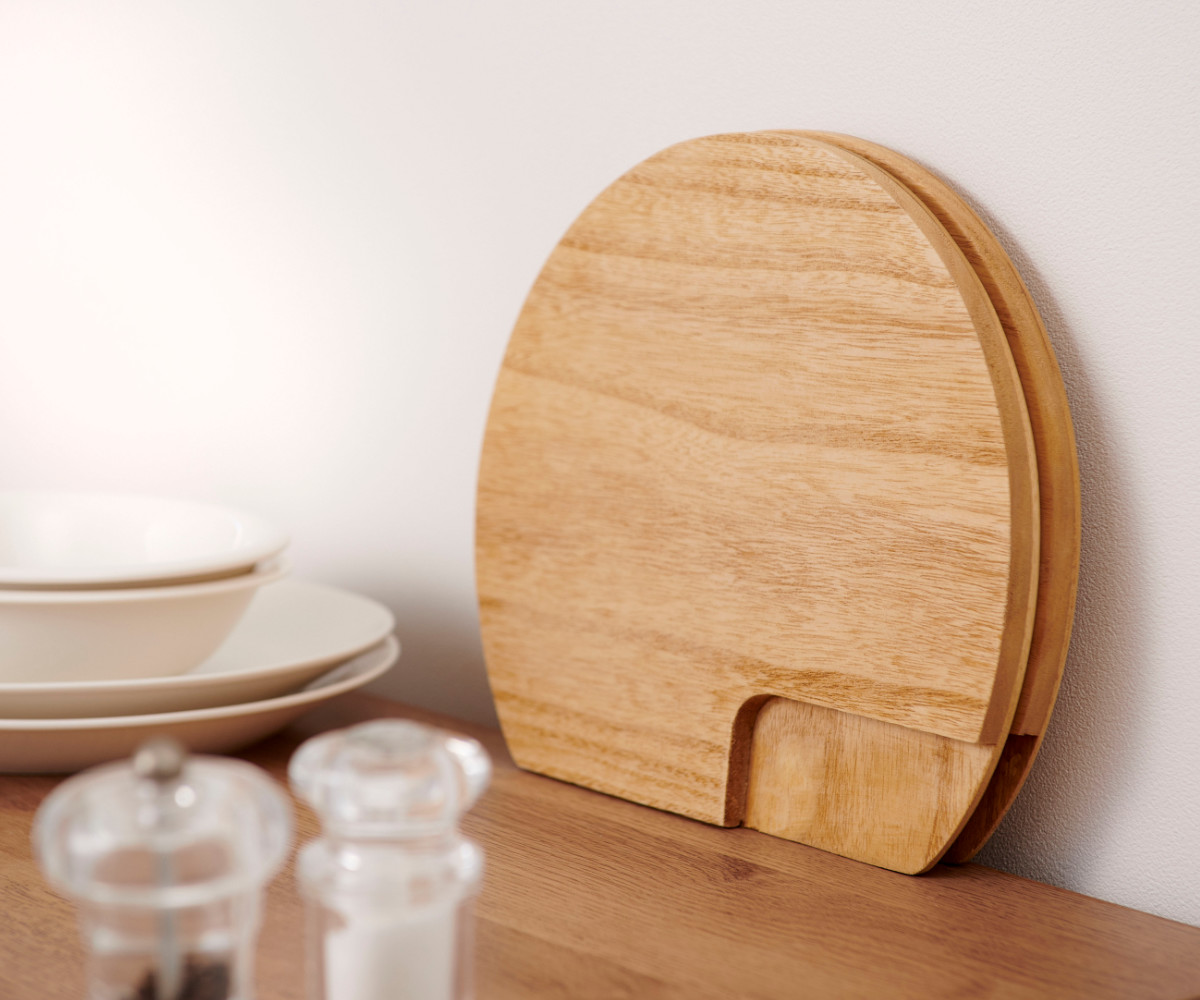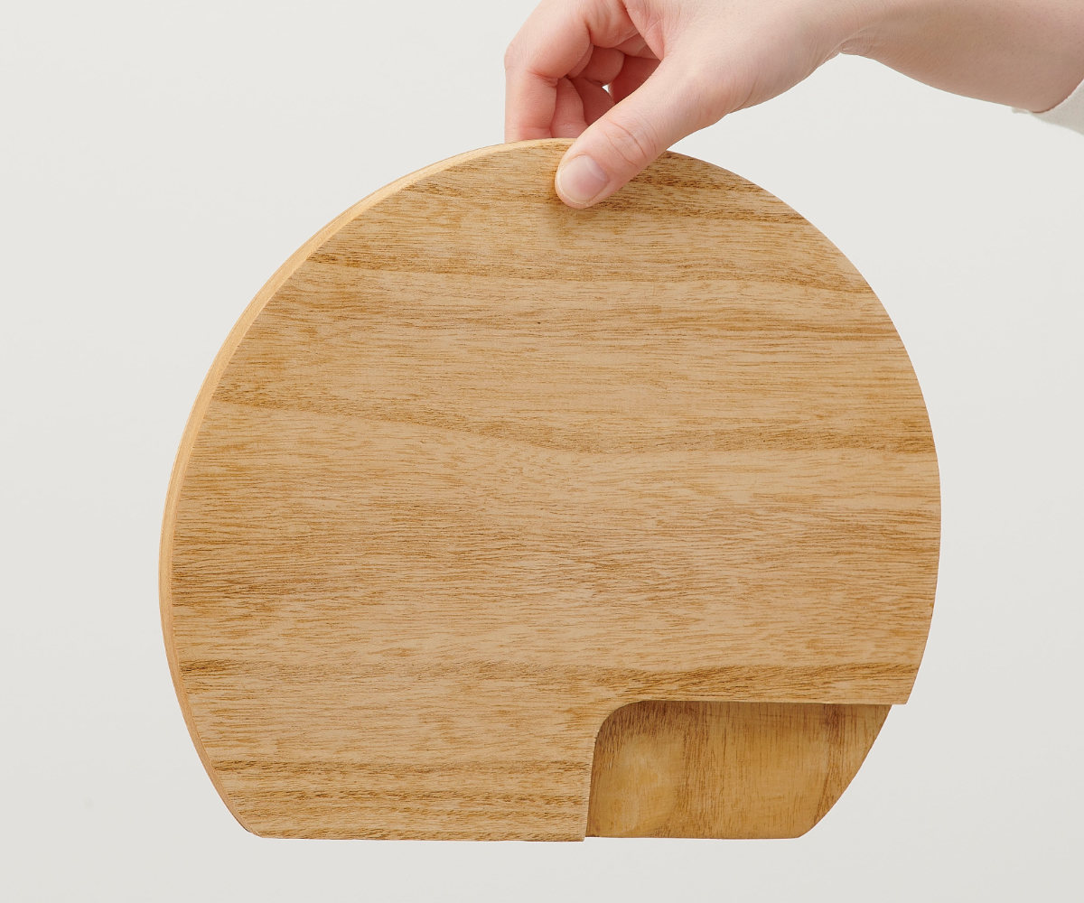 食材をカットしたあとは、そのままお皿として食卓で使えるカッティングプレートです。丸みをおびた形状と自然で優しい木目は、お料理を引きたて、どんな食卓にもなじみます。