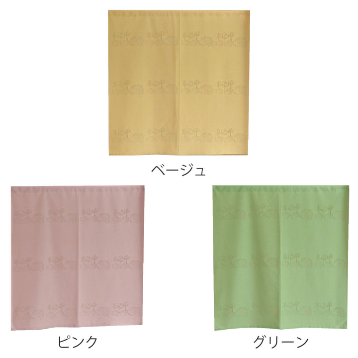 かわいらしいハリネズミ柄の防炎加工を施したのれんです。北欧では幸せを呼ぶと言われていて、縁起の良いハリネズミを描いています。洋風のお部屋だけでなく、和テイストの空間にも馴染みます。きなこのような色味のベージュ、小豆ミルクのようなピンク、抹茶のグリーンと今までになかった、今人気のくすみカラーをとりいれました。