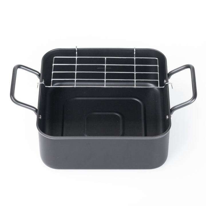 丸型よりも広く使える四角形の天ぷら鍋です。20cmのコンパクトサイズでも、揚げ網を外せばとんかつが2枚揚げられる広さがあります。お弁当作りなどのちょこっと使いにも便利にお使いいただけます。