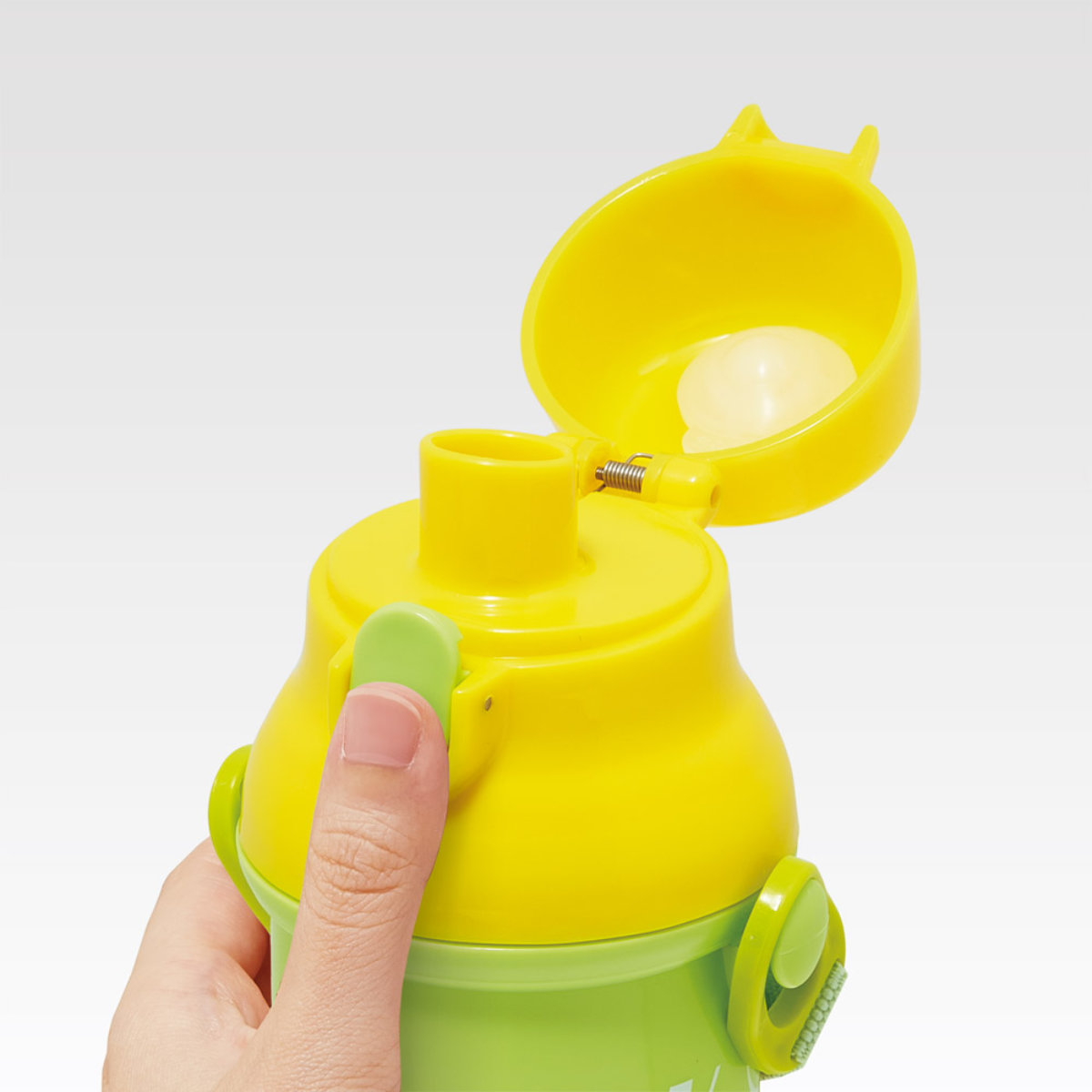 水筒の蓋はボタンを押すだけで開けることができるワンタッチ式です。飲み終わったら蓋をカチッと閉めるだけなので、小さなお子様でも簡単に開閉できます。