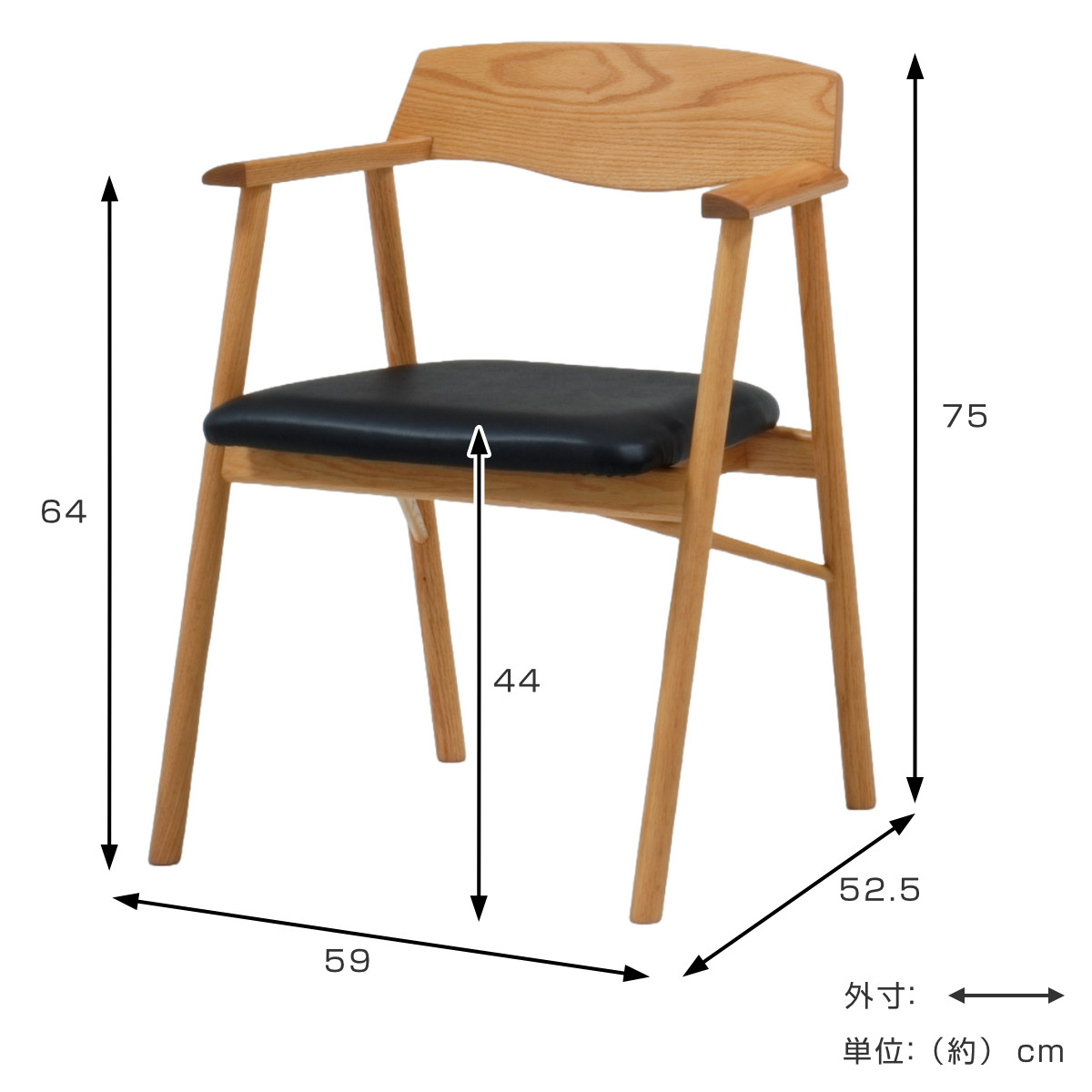 | サイズ | 約 幅59×奥行52.5×高さ75(cm) 座面高:約 44(cm) |