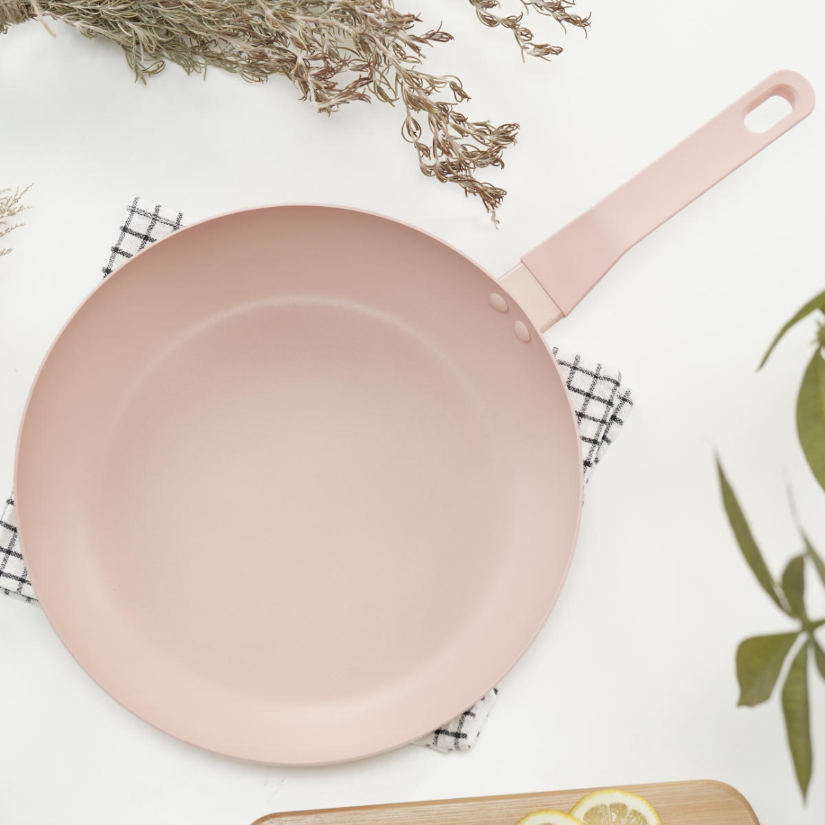 外面だけでなく、内面にもペールピンクを採用したフライパンです。お料理の焼き具合やスープの濃さを確認しやすいカラーです。