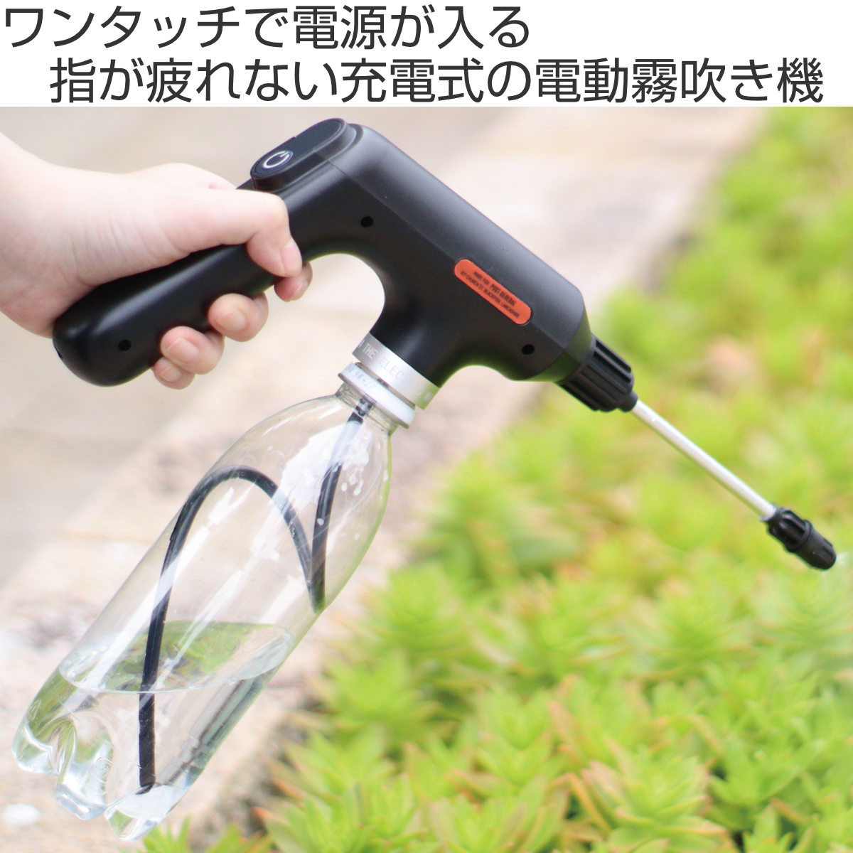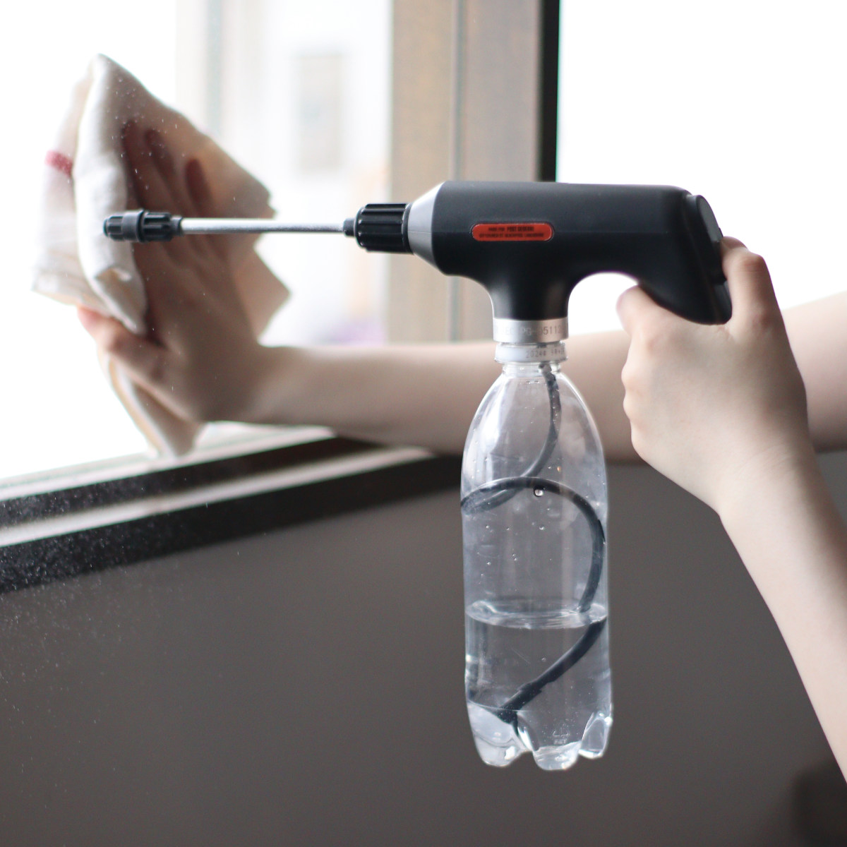 | 注意事項 | ※本品を水につけたり、水中で使用しないでください。 ※塗料など粘性のある液体は絶対に使用しないでください。ポンプ、ノズルの目詰まり故障の原因になります。 ※火器器具や高温になるものに近づけたり、放置しないでください。火災やバッテリーの発火、本体の変質の原因となります。 ※小さなお子様の手の届かないところでご使用ください。 ※ペットボトルは付属しません。 |