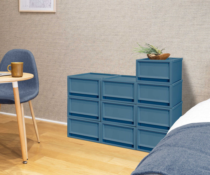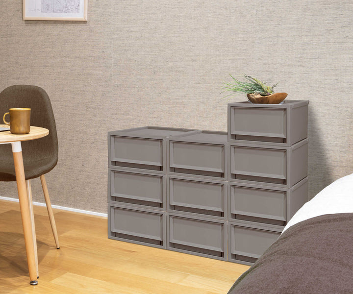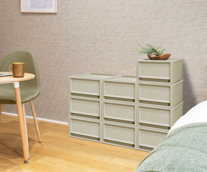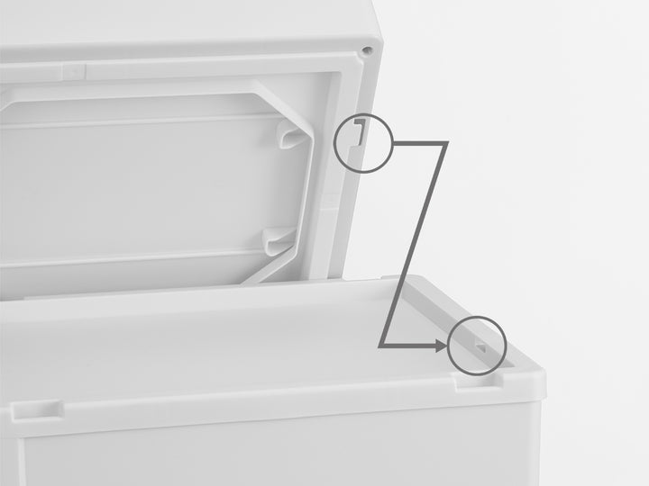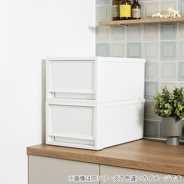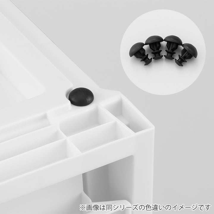 積み重ねても上下段を固定できるので抜群の安定感があります。前倒れ防止機能付きで引き出しを開く時、ケース後部が浮き上がり前方へ倒れてしまう...というトラブルを防ぎます。