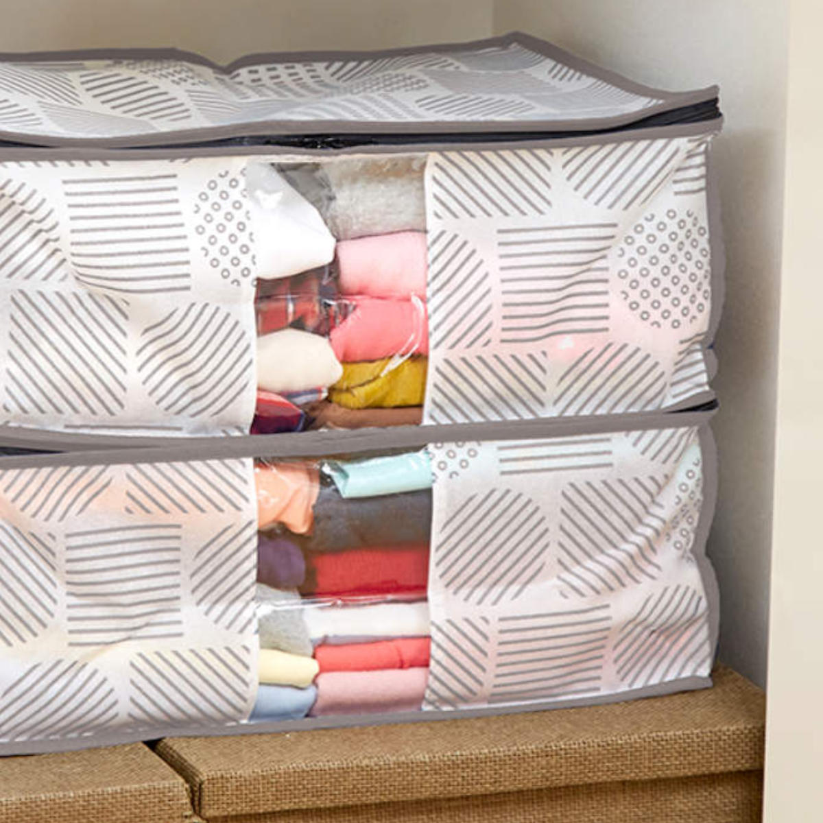 北欧柄がおしゃれな衣類用収納袋です。季節物の衣類を気になるホコリから守り、清潔に保ちます。