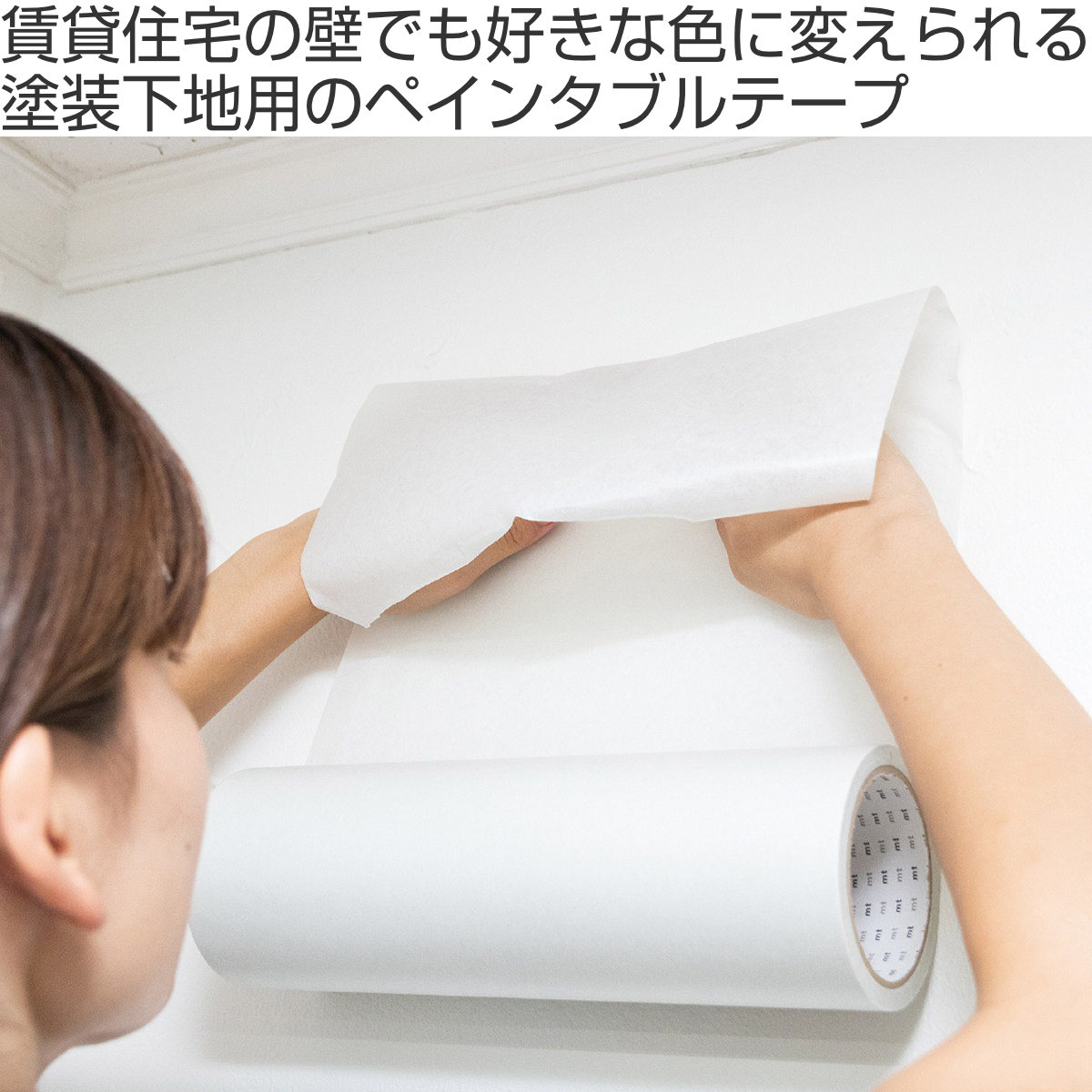 塗料メーカーと共同開発した、ペンキが塗れる塗装下地用マスキングテープ「ペインタブルテープ」です。このテープの上から塗装すれば、原状回復が必要な賃貸物件の壁紙でも好きな色に変えられます。お部屋の印象をガラッとチェンジしてみませんか。