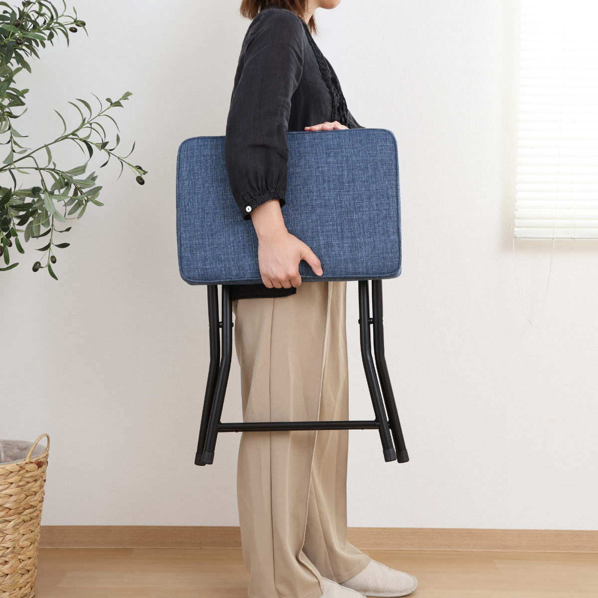 折りたたむと厚さ約13cmとスリムなので、使用しない時は棚の隙間などに収納することができます。座面横のピンを外して、背側の座面裏をたたくと折りたたむことができます。
