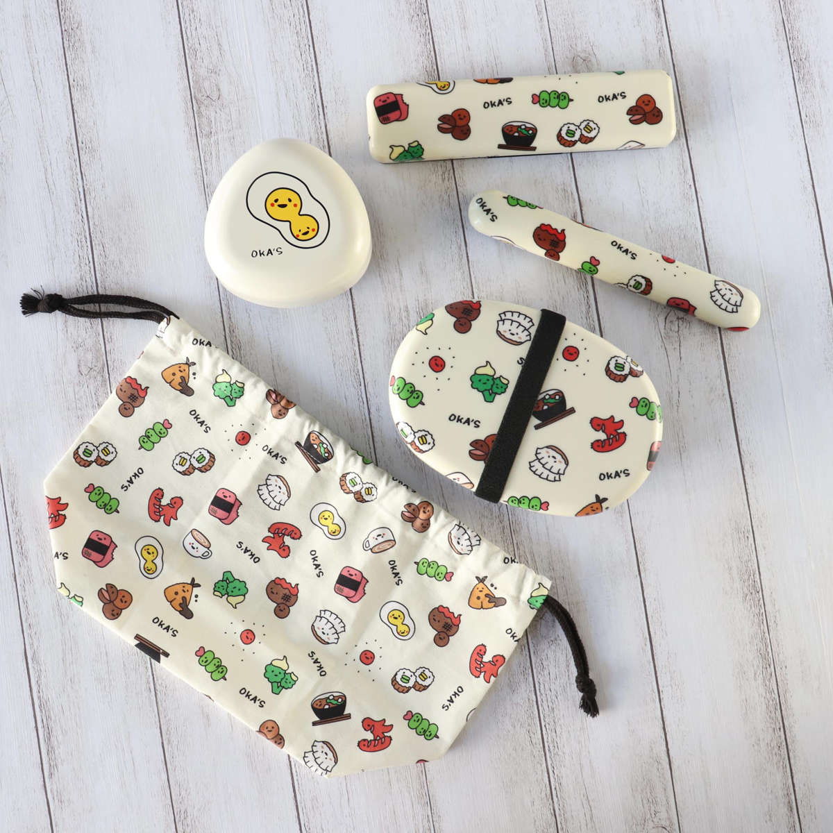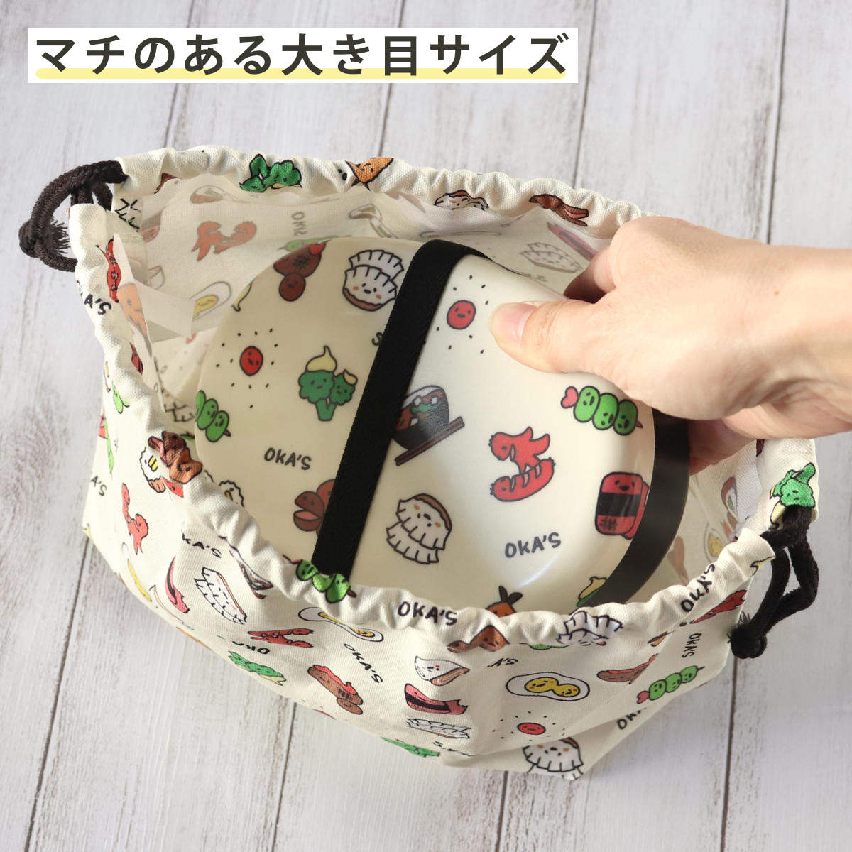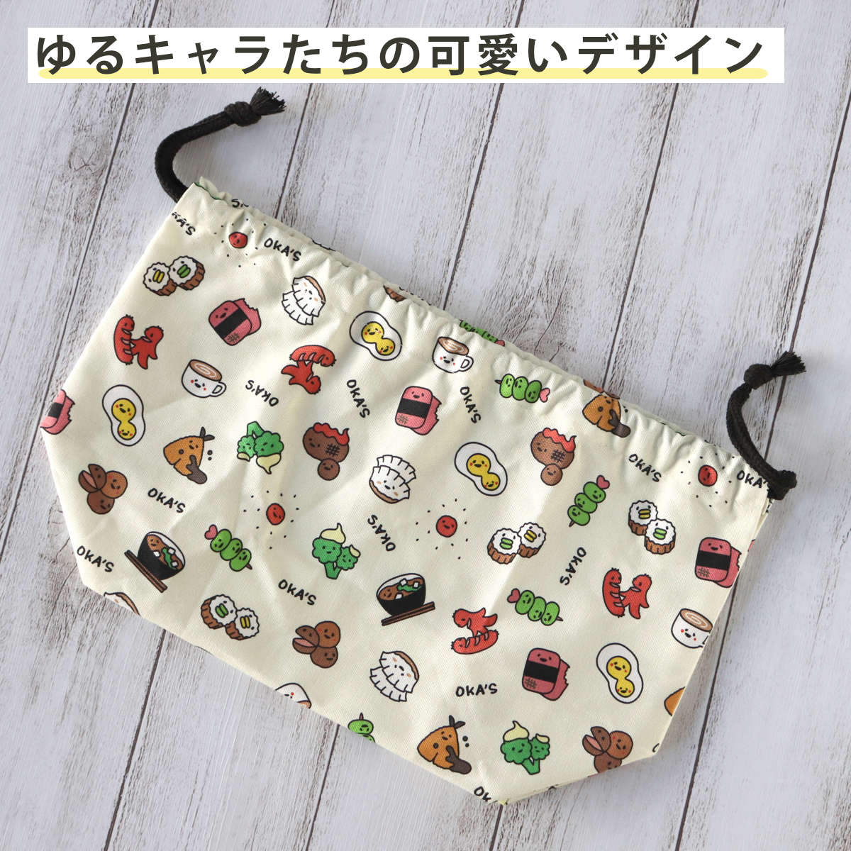 ランチタイムを楽しくしてくれる、オカズ柄のイラストがユニークなお弁当袋です。テンションも上がって、お昼からの仕事や勉強もはかどりそうですね。友達にも自慢したくなっちゃうかも!