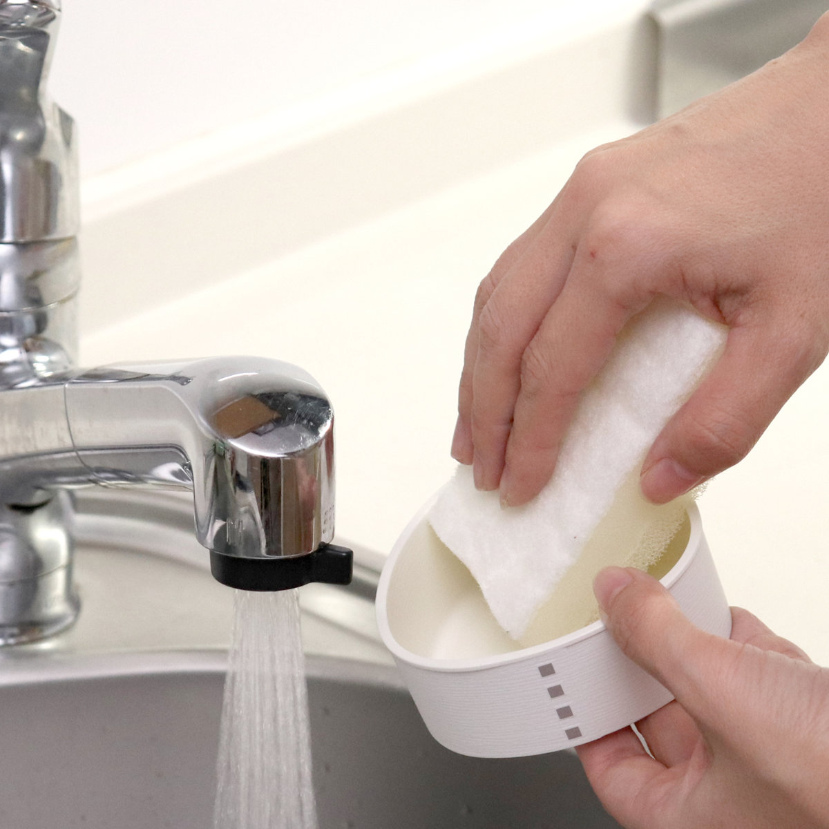 扱いやすい樹脂製のケースで、汚れにくくお手入れも簡単。パーツが少なく角丸デザインなので、スポンジでくるっと洗うだけできれいになります。