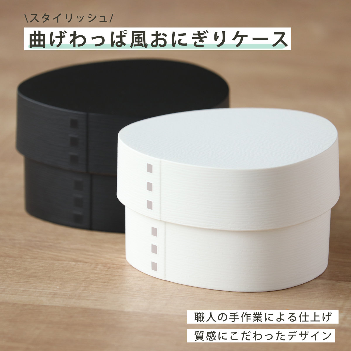人気の「わっぱ弁当」が手のひらサイズのおにぎりケースに! スタイリッシュな印象のカラーとマットな質感で、今までの曲げわっぱのイメージを一新しました。