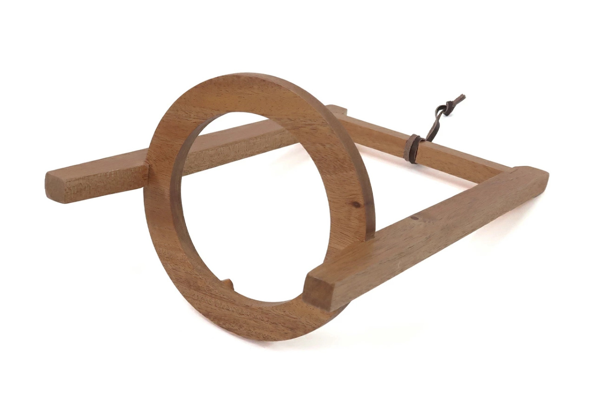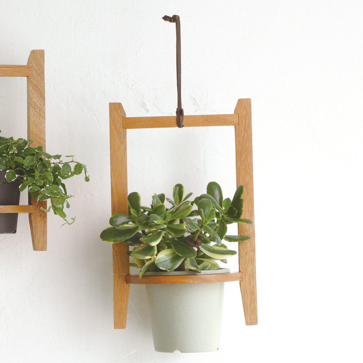 マホガニーの持つ木の温もりと素材感を活かしたポットハンギング Lサイズです。お気に入りの鉢と植物も吊るすことで、また違った表情になります。天井に設置したチェーンフックなどに革紐を吊るすことでハンギングをお楽しみいただけます。