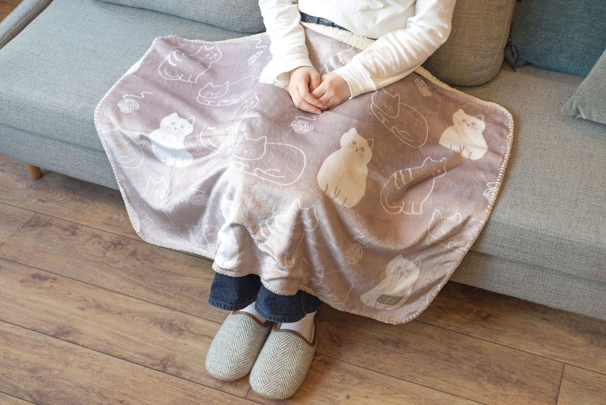 おすまし顔がかわいい猫柄のブランケットです。表面はすべすべと滑らかな触り心地、裏面はもふもふ暖かなボア素材です。全面にイラストが入った総柄デザインで、猫好きの方へのプレゼントにもおすすめです。