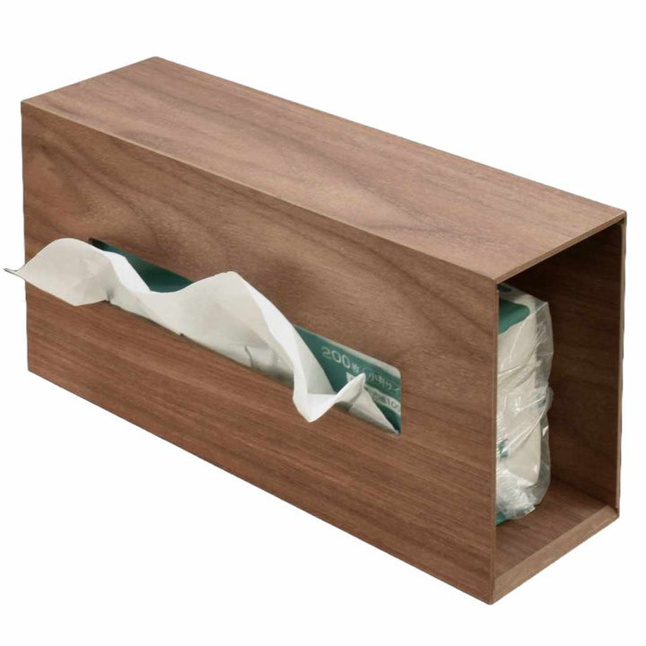 ティッシュはホルダーの側面から差し込むだけで、手軽に詰め替えができます。ボックスティッシュ、ソフトパックのどちらにも対応したサイズです。取り出し口が広めの設計なので、キッチンペーパーやペーパータオルを入れての使用も可能です。