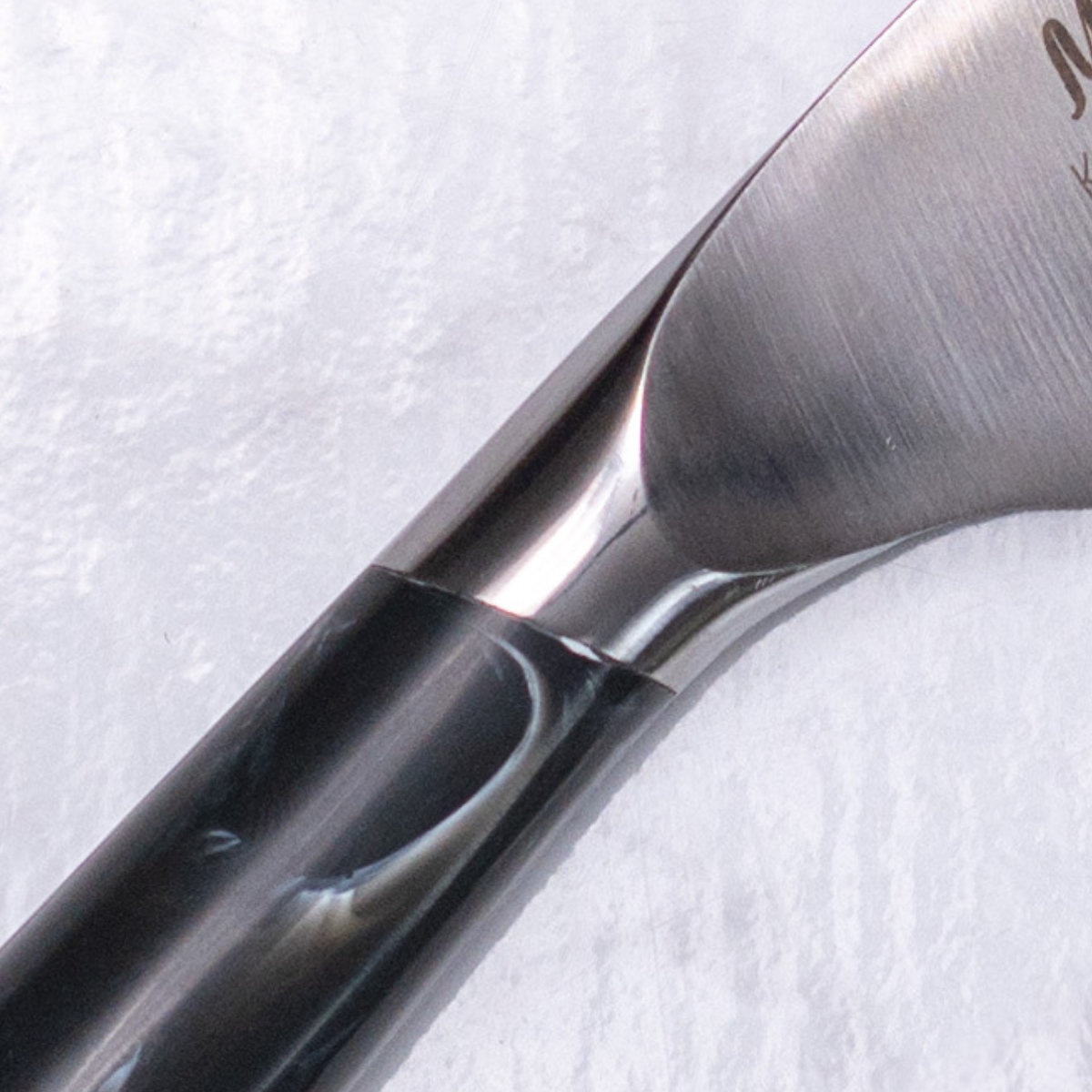 口金のメリットは、何年使っても汚れがたまりにくいので、洗いやすいことです。また、ハンドルと刀身の境目がカーブしながら滑らかに溶接されているため、強度面でも優れています。