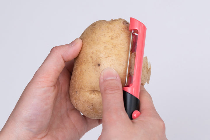 縦型ピーラーは刃が爪に当たりにくい持ち方になるため、ネイルを楽しむ女性も使いやすいのがポイントです。ナイフ感覚で使えて、皮を一定の厚さにむくことができます。